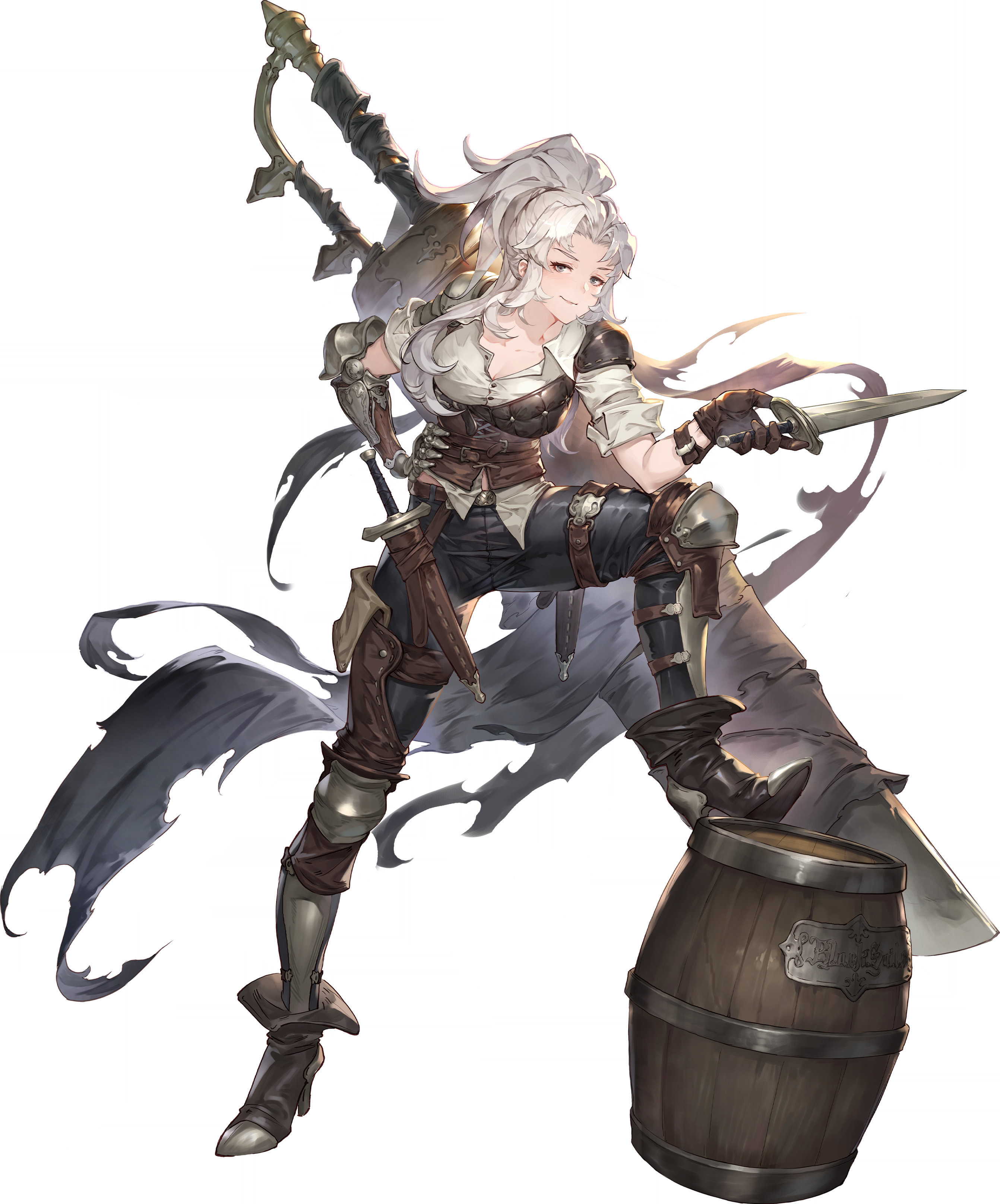 while she leans back against her giant sword, stabbed into the ground deep enough it won't tip right away, she jangles a... ring of keys, until she gets enough peoples' attention. ]